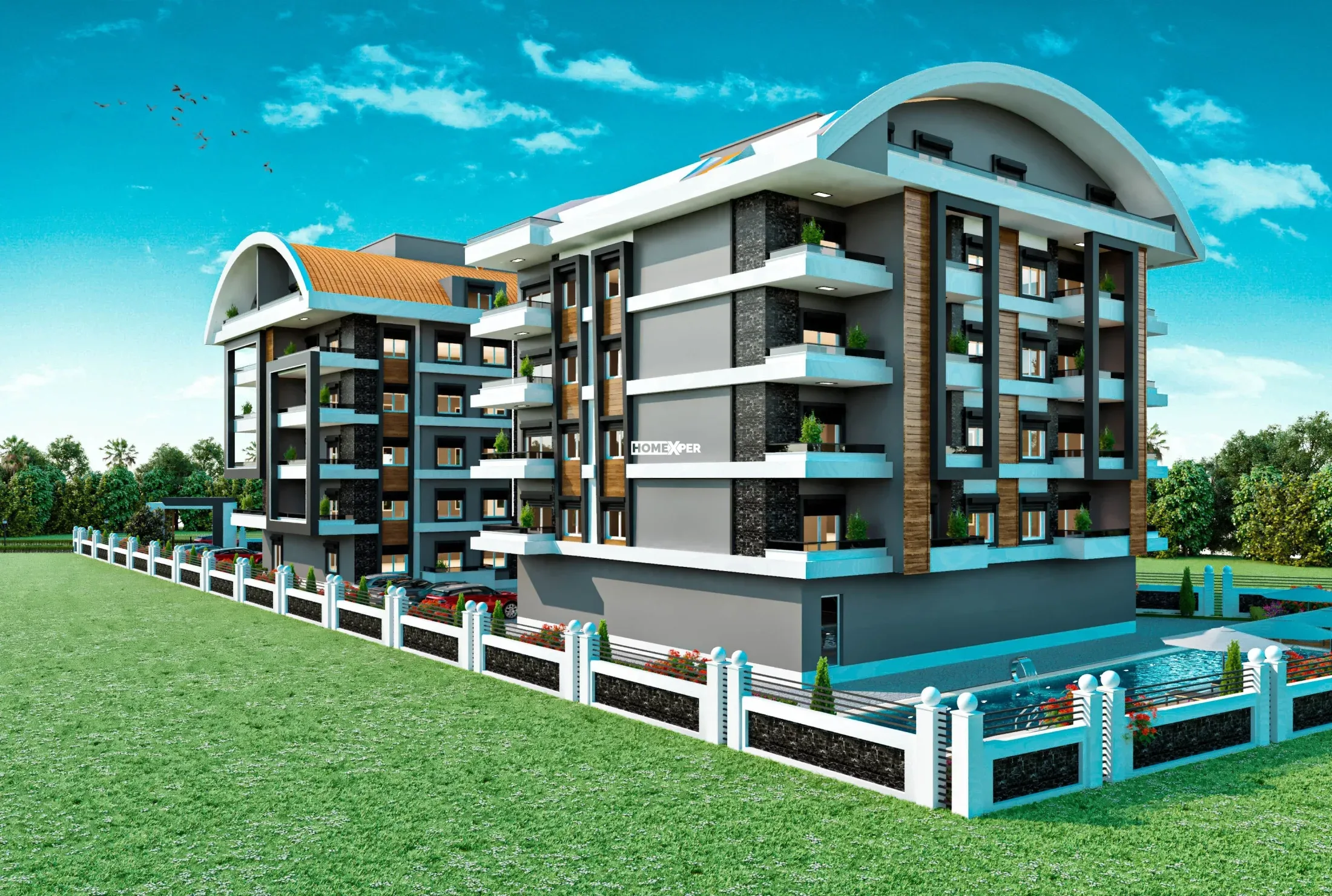 Alanya Payallar da Rose garden ful aktiviteli residence de sıfır 1+1 daire