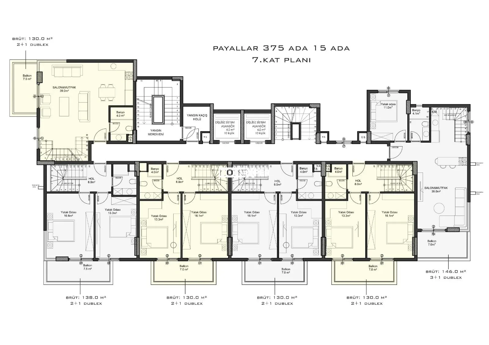 | KAT SAYISI / AMOUNT OF FLOOR COUNT / КОЛИЧЕСТВО ЭТАЖЕЙ | 7+ROOF | |
